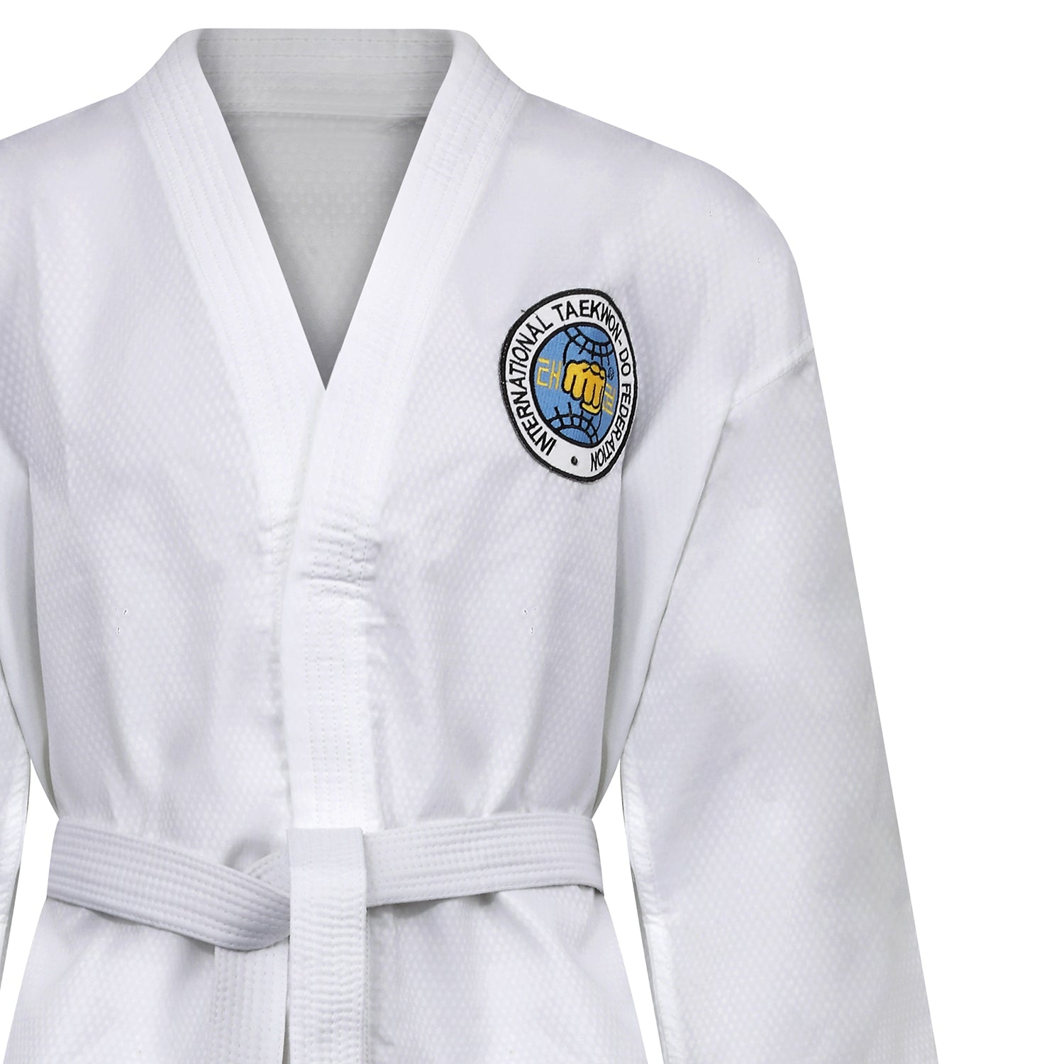 This uniform is made from Ultra Light Diamond Fabric, It has been specially designed for International Taekwondo Federation sparring and competition.