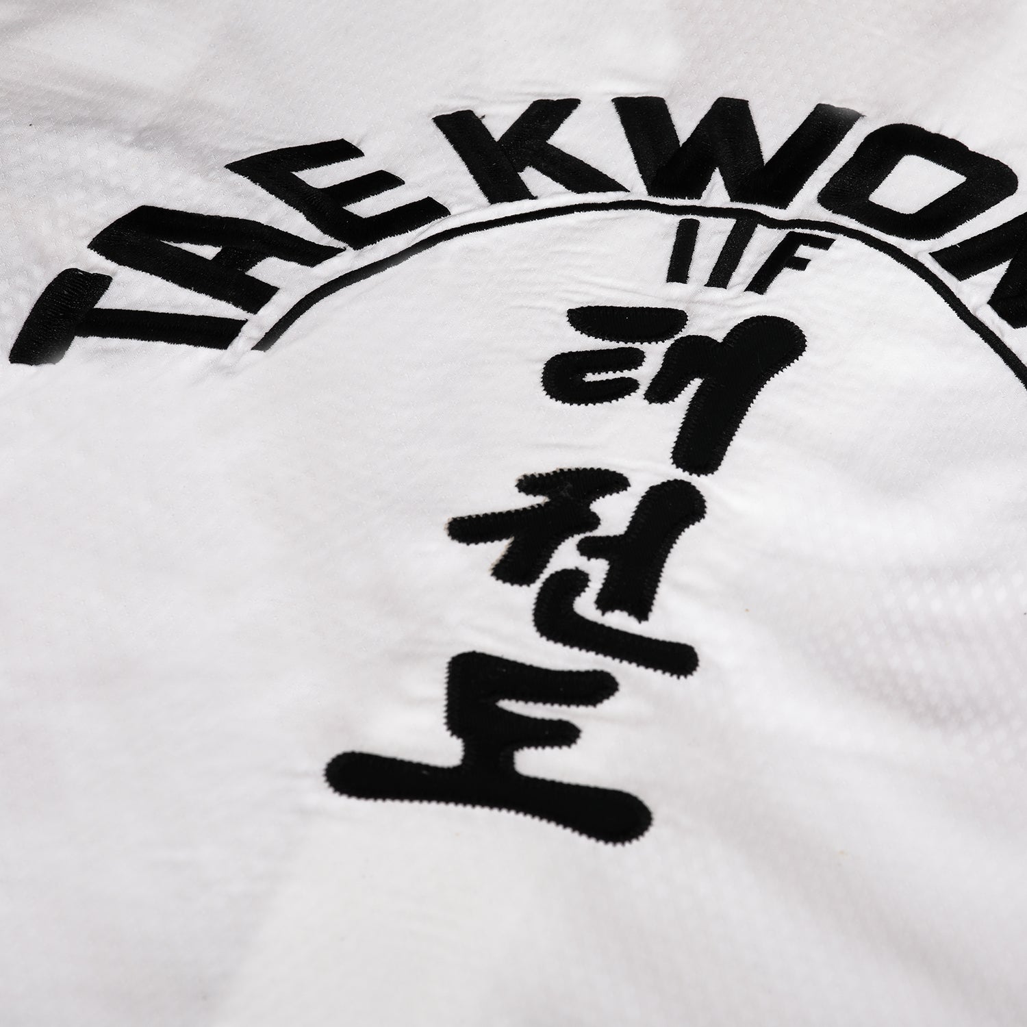 This uniform is made from Ultra Light Diamond Fabric, t has been specially designed for International Taekwondo Federation sparring and competition.