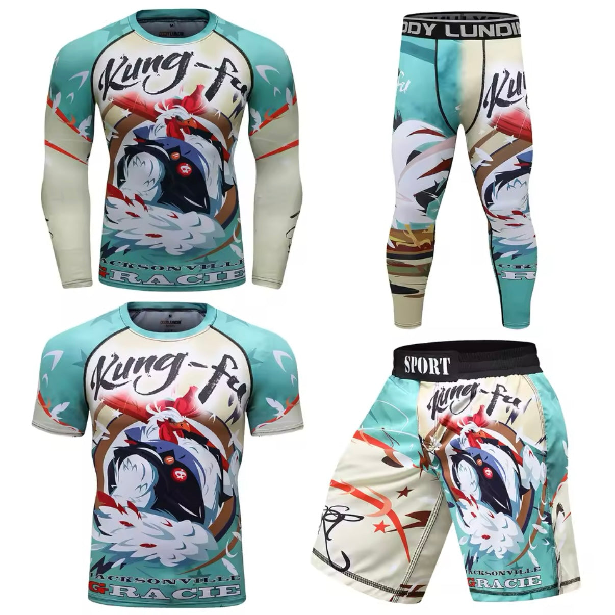 Kung Fu Chicken Premium BJJ No Gi / MMA Set. Rash Guard, Shorts & Spats - MADE TO ORDER 2 WEEK DISPATCH